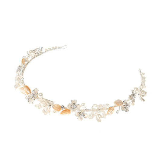 AusverkauftTiara mit Blumen, Blättern und Strasssteinchen